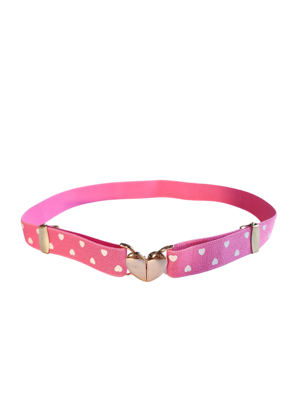 Elastic Adjustable Stretch Belt in Hot Pink w/hearts - 29" fully extended