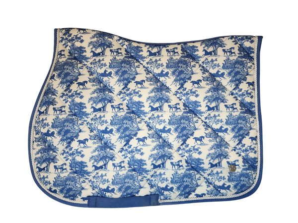 After over a year of product design, development and testing...the highly anticipated Equestrian Toile design is now available! This traditional pattern design has been elevated with equestrian details in the most lovely, true french blue. You won't find it anywhere else because all Dapplebay designs are 100% unique and created in house by founder & designer, Leah.