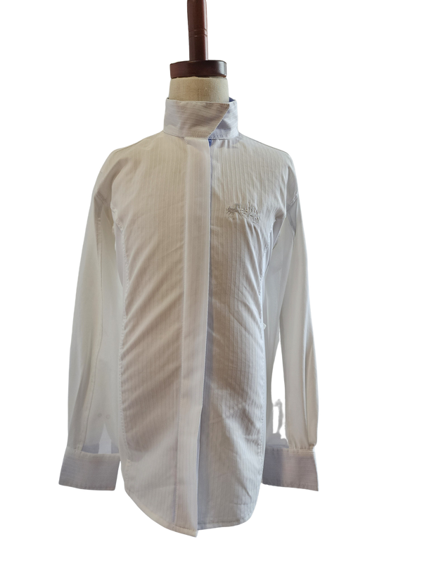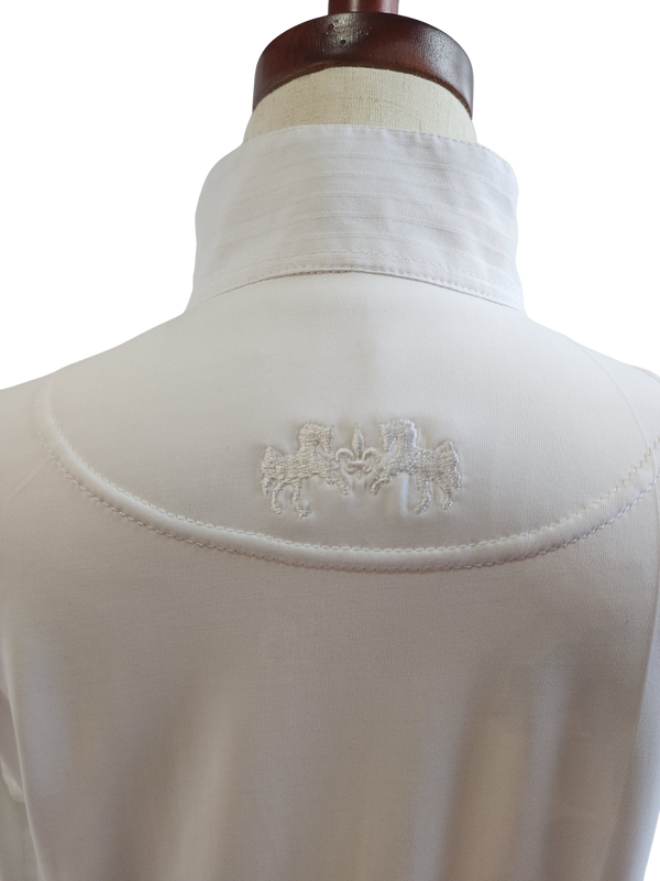 Fun and functional, the Equine Couture riding shirt for children will keep them comfortable and in style. The stretchy Coolmax fabric sleeves and back will keep them cool, as well as the mesh fabric under sleeves and arm pits. The favorite feature of this shirt is the contrast trim with the whales print.